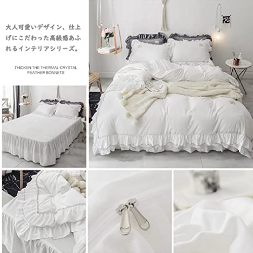 寝具カバー4点セット 姫系 フリル付き セミダブル 保温 ふかふか フランネル 冬 あったか ホワイト 高級 おし