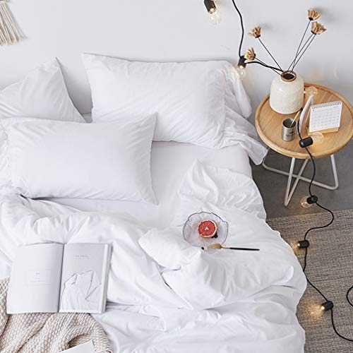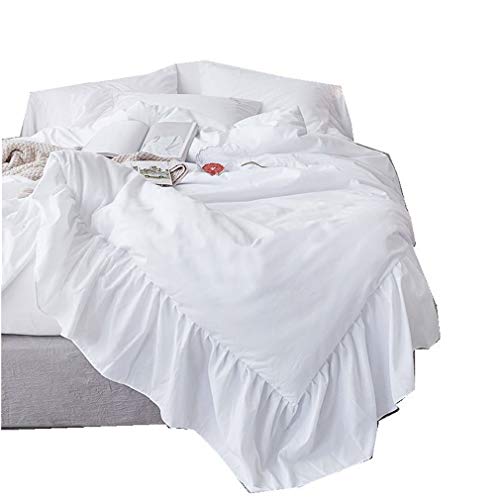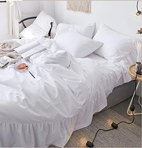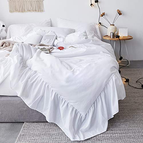アンティーク風 無地 ホワイトの掛け布団カバー フリルの枕カバー2枚 コットン寝具カバー セミダブル