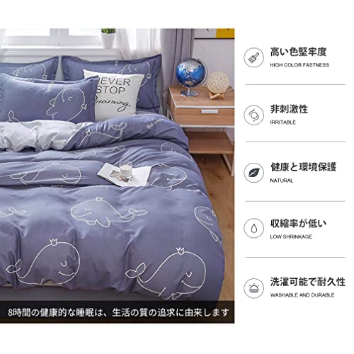 【洗濯OK】:家庭で丸洗いでき、毎日素肌に触れる布団カバーは、いつも清潔なものを使いたいと思います。色褪せにくい、型崩れが起きにくく、耐用性抜群。お子様にも安心です。四季を通じて長くご愛用いただけます。このカバーセットを使えば、寝具をいつも清潔と快適に保てることができ
