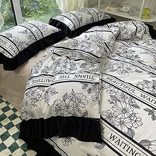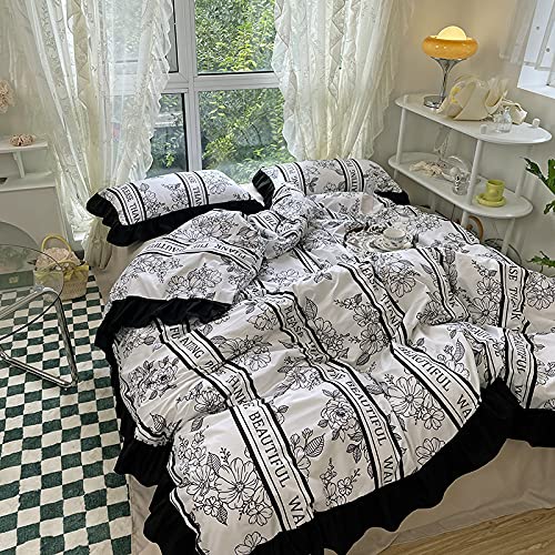 icyfall 布団カバーシングル3点セット 掛け布団カバー フラットシーツ 枕カバー フリル付き ソフト