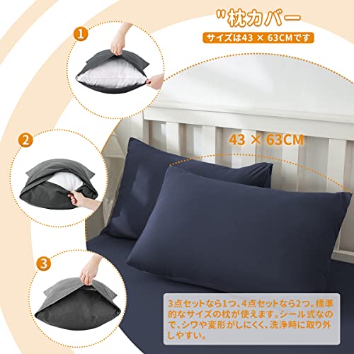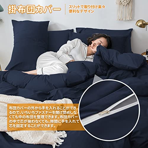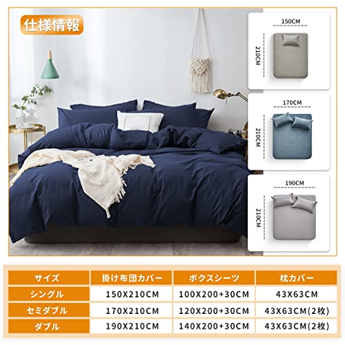 【セット内容&仕様】「掛け布団カバー(1枚)」 :布団留めひ付き、片側に210cm全開ファスナー使用 /「ボックスシーツ(1枚)」:通常サイズより大きめなので、高さ3-28cmの敷き布団とマットレスの底まで包む可能/「枕カバー(2枚)」:封筒式で、出し入れが簡単。