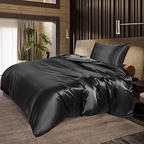 PiccoCasa 布団カバー サテン 3点セット 寝具カバーセット レーヨン素材 ツルツル 光沢 カバーセット超ソフト ジ