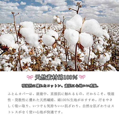 ?材質:綿100%生地 天然素材『綿100%』の良質な糸を使用し、品質にもしっかりこだわりました。もっと心地よい眠りを手に入れるために…とっておきアイテムをお届けします。天然性なのでお肌の弱いお子様に安心です。ふとんカバーは、就寝中、直接肌に触れるもの。だからこそ、吸湿性・発散性に優れた