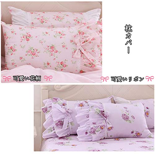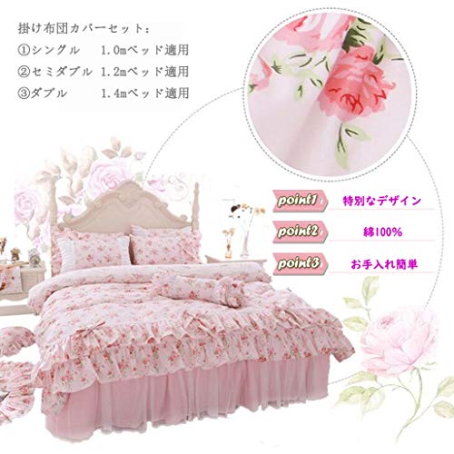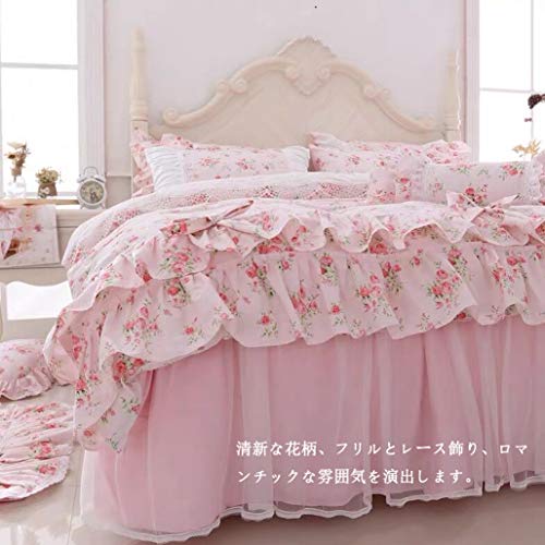 | 商品名 | 姫系 掛け布団カバーセット ダブル 4点セット 花柄 田園風 ピンク フリル レース付き 綿100% 柔らか 肌触り良い |