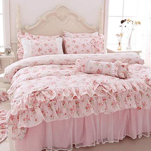 姫系 掛け布団カバーセット ダブル 4点セット 花柄 田園風 ピンク フリル レース付き 綿100% 柔らか 肌触り良い