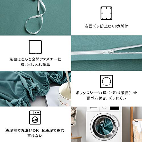 【使いやすいデザイン】足側にほとんど全開ファスナー仕様より仕上がり、中身の出し入れや交換に便利です。紐8ヵ所付いており、ボックスシーツは全周ゴム付きで、ずれにくく、固く固定されます。上質なYKKファスナーを採用した ため、外れたり布が噛んだりするなど壊れてしまう心配はなく、安心してお使いできます。