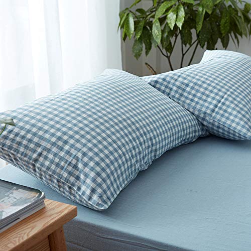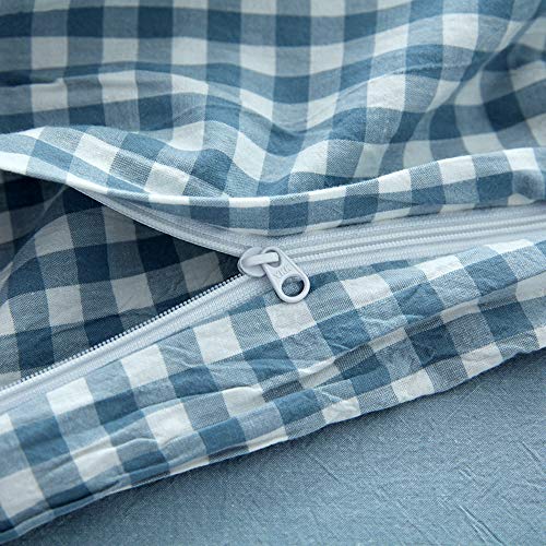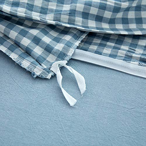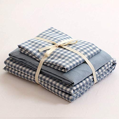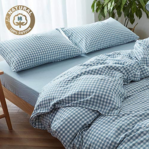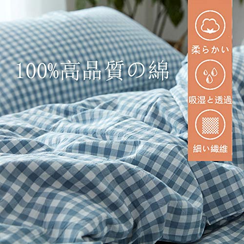 布団カバー 綿100% (ブルー・チェック柄, シングル・3点セット)