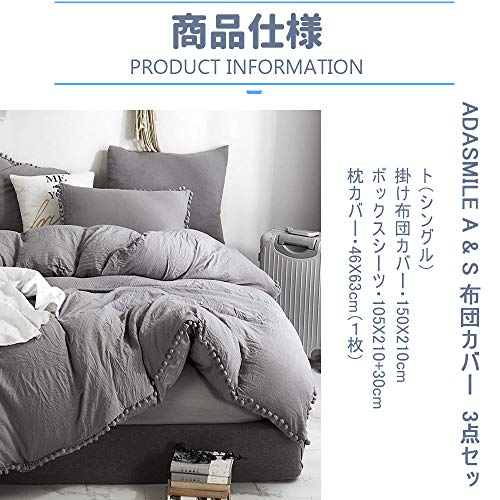 | 商品名 | ADASMILE A & S 布団カバー シングル 3点セット 洗いざらし ベッドカバー 掛ふとんカバー 枕カバー1枚 寝具カバー |