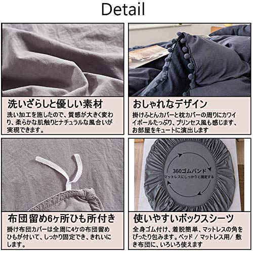 ?【おしゃれなデザインを楽しみ】掛けふとんカバーと枕カバーの周りにカワイイボールたっぷり、プリンセス風も感じます、お部屋をキュートに