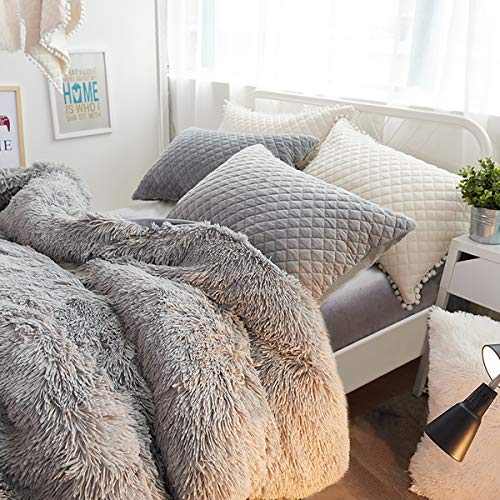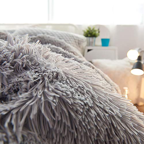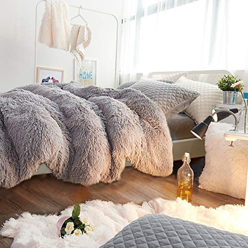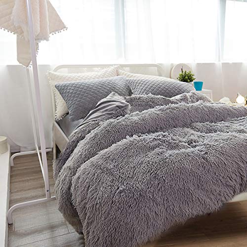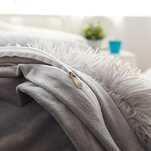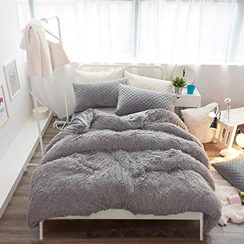Hanacat 布団カバーセット ダブル 4点セット 毛足の長いシャギー あったか 冬用 掛け布団カバー ボックスシーツ