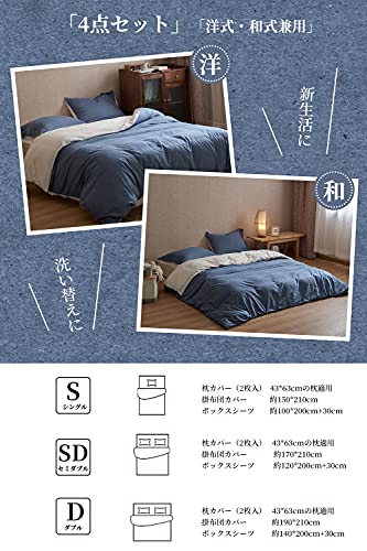 MILDLY 布団かばーセミダブル 4点セット コットン100% 布団カバーセット セミダブル:掛け布団カバー ボックス