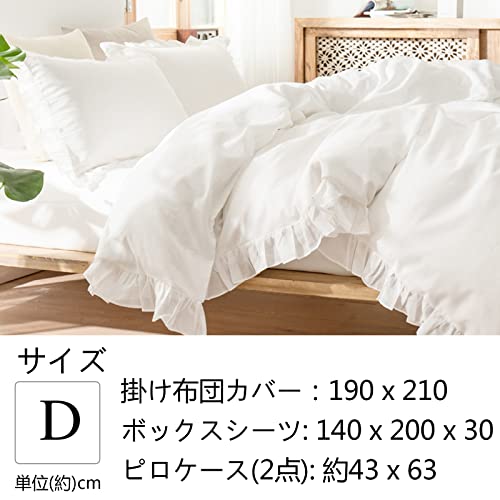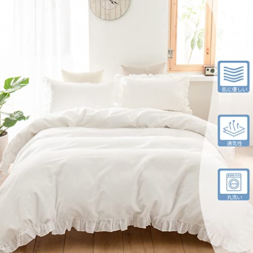 綿100% 布団カバー 4点セット ? 3重ガーゼ 掛け布団カバー フリル付き 枕カバー ボックスシーツ 可愛い 姫系 -