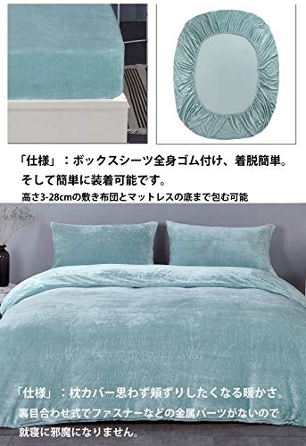 カラー:レイクブルー サイズ:シングル・3点セット セット内容:フランネル布団カバー 3点セット 掛布団カバー+ボックスシーツ+ピローケース(一枚)洋式・和式兼用〔ボックスシーツ〕全周ゴム式 100×200+30CM 掛け布団カバー 150×210CM 枕カバー43×63CM 【材質】:(フランネル)/ポリエステル100%。絨の密度は高く、もっと柔らかく、もっと保温して。