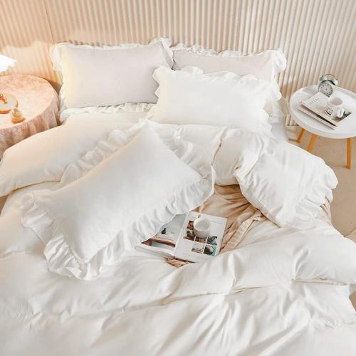?かわいいフリル:掛け布団カバーと枕カバーは可愛いフリルが付いています、シンプルでスタイリッシュで、部屋の雰囲気を変えたいなら、これは間違いなくとても良い選択です。あるいは、家族や友人への贈り物としても贈ることができます。