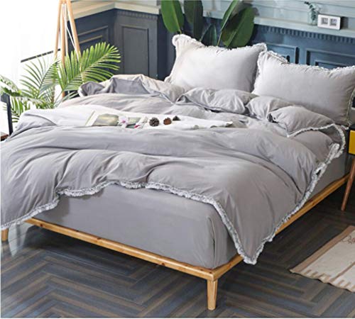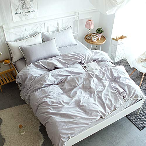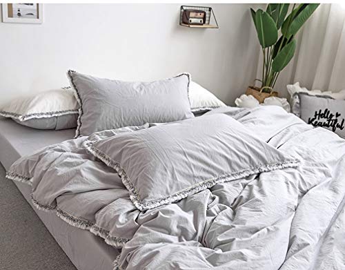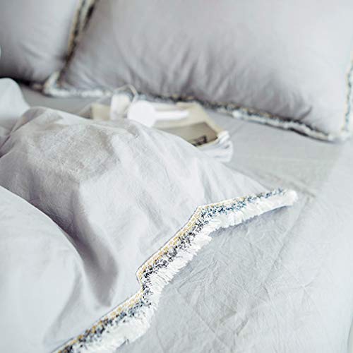アンティーク寝具カバー 無地グレーの掛布団カバー ダブル 枕カバー2枚 房飾り付き