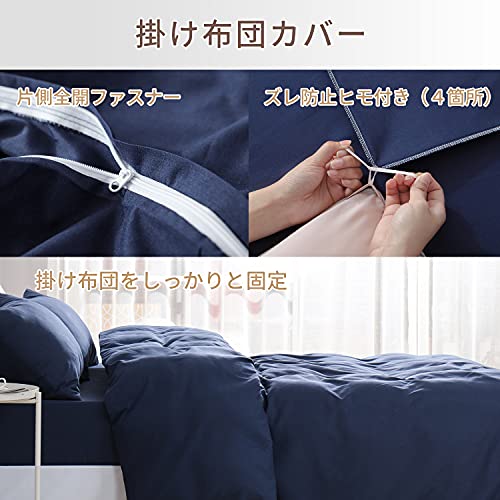 【和式洋式兼用】掛け布団カバー:全開良質ファスナー付き、4箇所に布団留め紐付きます。ボックスシーツ:全周防止ゴム付き、厚さ4-26cmのマットレス、敷き布団にぴったりフィットします。枕カバー:封筒式設計、出し入れが簡単