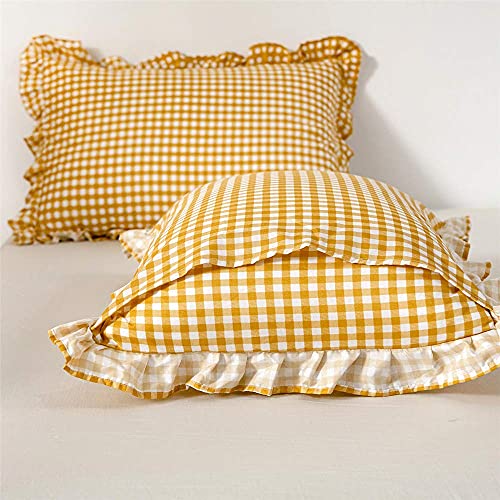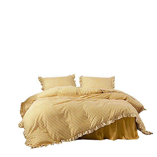 BeddingWish 布団カバー ダブル4点セット ベッドカバー フリル付き ベッドカバー ベッド用 布団用 (イェロー・ダ