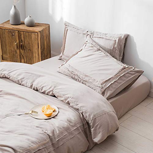 Leadtimes 布団カバー 綿 4点セット 肌に優しい ボックスシーツ 枕カバー 掛け布団カバー (セミダブル, ベージュ)