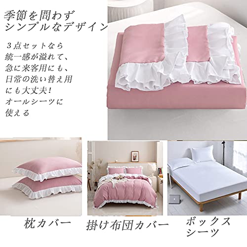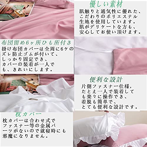 ? 【スタイリッシュなデザイン】掛け布団カバーと枕カバーは可愛いフリルが付いています。 フリルの色に差があります、 お部屋をキュートに演出します。様々な所にも雰囲気がぴったり合わせます。しっかり生地で、肌触りが良いですから、疲れた体にちゃんとリッラクスできて、癒されたような感じられます。