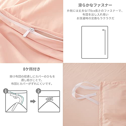 【セット内容&仕様】:セミダブル:掛け布団カバー(1枚):170X210cm/ 片側に全開ファスナー使用、布団留めひも8ヶ所付き・ボックスシーツ(1枚):125X215+30cm / 全周ズレ防止ゴム付き・枕カバー(2枚):43X63cm/合わせ式で、出し入れが簡単、ファスナー等の金属パーツがないので就寝時にも邪魔になりません。