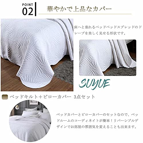 ベッドカバー ダブル ホワイト おしゃれ 3点セット ベッドスプレッド コットン100% キルトカバー ベットカバ