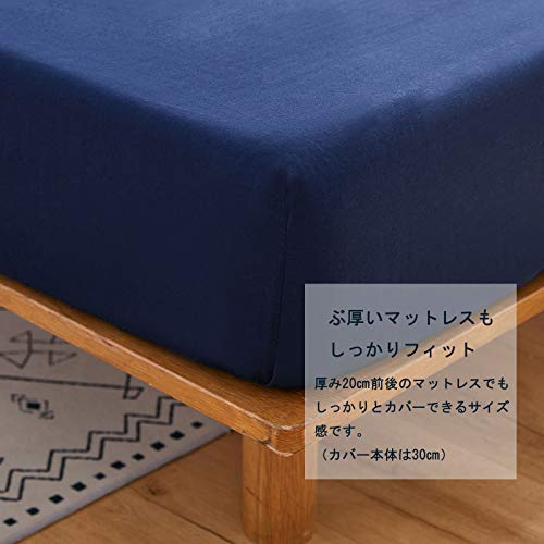 ボックスシーツ ベッドカバー 周囲ゴムフィット式 綿100% 夏すずしい 冬あったかい 無地 ネイビー クイン 160