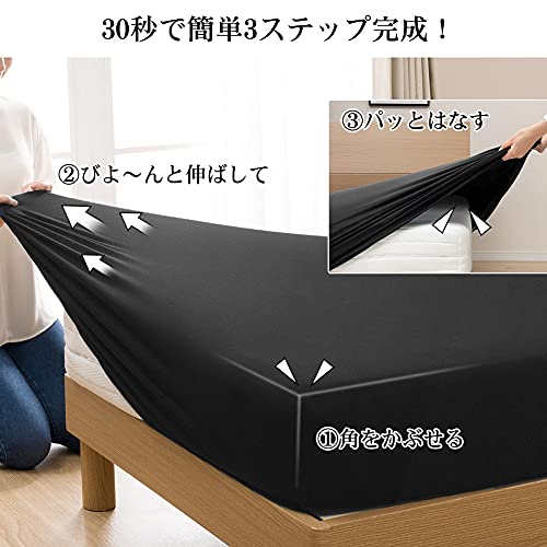 【30秒で簡単に装着できるシーツ!】たて・よこ3Dストレッチの伸縮性に優れ、無駄なくただ30秒で、3ステップ(1)角をかぶせる(2)びよ~んと伸ばして(3)パッとはなす。「のびて、ピタッ!」とつけられる!取り付け、着脱も簡単♪