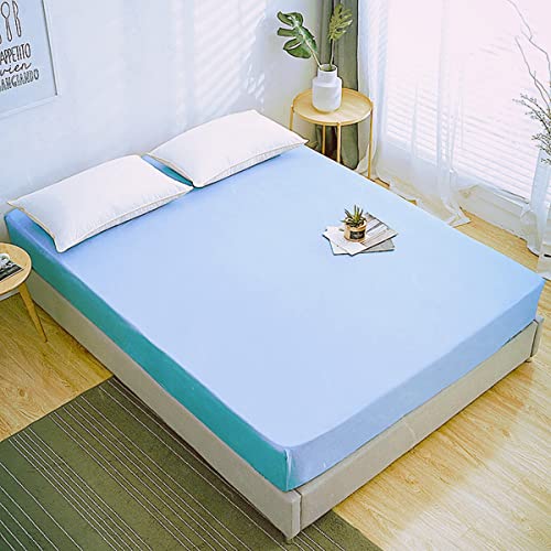 ボックスシーツ し シーツ マチ部分約30cm ベッドシーツ マットレスカバー ベッドカバー (ブルー, ダブル・150X2
