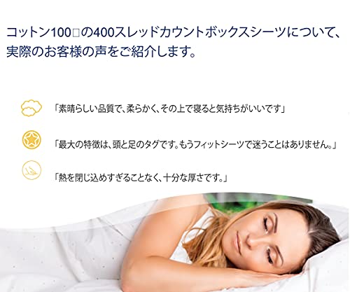 【100%コットンボックスシーツダブル涼しく快適な眠りを応援】贅沢な400TCベッドシーツで横になると、柔らかく、滑らかで、涼しく、毎晩安らかな眠りにつくことができます。マイクロファイバー製のシーツとは異なり、自然な輝きを放つコットンのシーツです。本商品には綿製シーツが含まれます。サイズは140cm x 200cm + 30cmのコットン製フィットシーツです。寝付けない、深い眠りが確保できないという方には、是非とも寝具の見直しをおすすめします。ベッドシーツは日々の眠りの質を大きく左右します。ひいては、一日のエネルギーの確保ができるかどうかの決め手に。明るく元気な毎日は、健康的な睡眠から。是非ともこちらをお試しください。