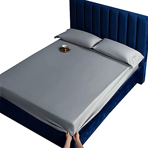 ボックスシーツ300本高密度生地 セミファミリー・シルバーグレイ 綿100% ベッドシーツ 全周ゴム付き 丸洗い