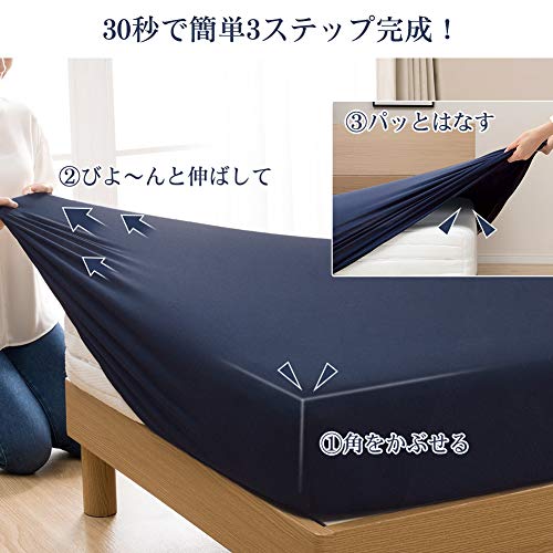 【30秒で簡単に装着できるシーツ!】たて・よこ3Dストレッチの伸縮性に優れ、無駄なくただ30秒で、3ステップ(1)角をかぶせる(2)びよ~んと伸ばして(3)パッとはなす。「のびて、ピタッ!」とつけられる!取り付け、着脱も簡単♪