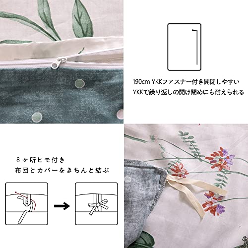 【材?】 綿100% 高い密度生地で耐用,しかも柔らかくい肌触りになります。 カバーの両サイドにファスナー付き。端から端まで開いて布団の出し入れも簡単・便利。