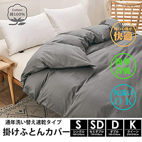 掛け布団カバー (単品) カラー:ダークグレー サイズ:ダブル(190×210cm)