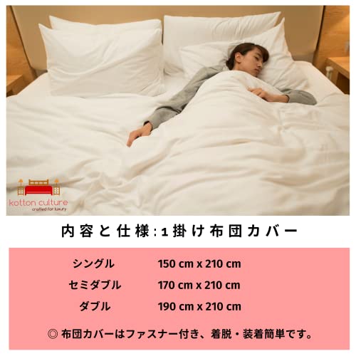 Kotton Culture ニュートラル 掛け布団カバー 1枚 エジプト綿100% 400スレッドカウント ファスナー開閉式&角部にひ