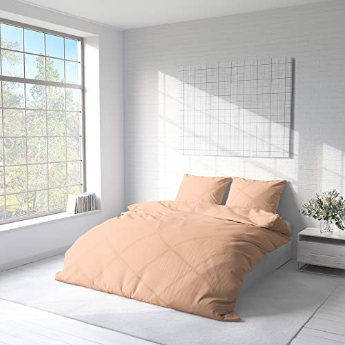 ファスナー開閉式&角部にひも付き:綿製の掛け布団カバーにはそれぞれ開閉しやすい隠しファスナーが付いています。通常のボタン式カバーよりも簡単に使えますので、このカバーに掛け布団を入れたり出したりする際に便利です。また、中に入れた掛け布団を固定してずれを防げるよう、内側