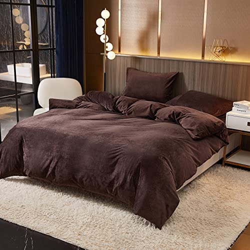 かけ布団カバー マイクロファイバー 暖かい 秋冬用 洗える 静電気防止 ファスナー仕様 ブラウン クイ
