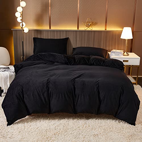 かけ布団カバー マイクロファイバー 暖かい 秋冬用 洗える 静電気防止 ファスナー仕様 ブラック キ