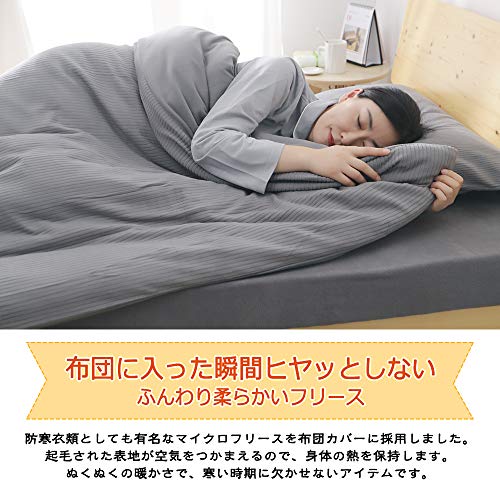 【あったかフリース素材】柔らかなマイクロフリースのあたたかい掛け布団カバーです。吸湿発熱糸にキメの細やかなマイクロフリース素材を採用し、体から出る熱を利用して保温力がアップ!軽量なので、身体への負担も少なく、快適な睡眠をサポートします。