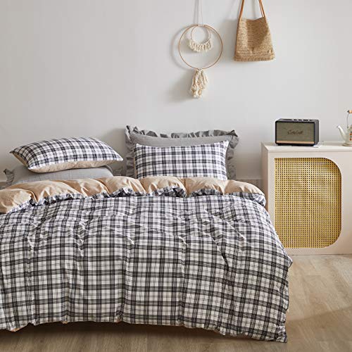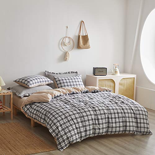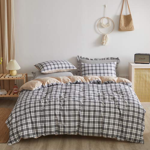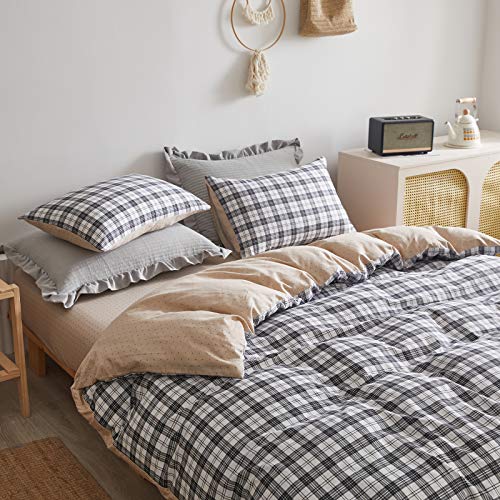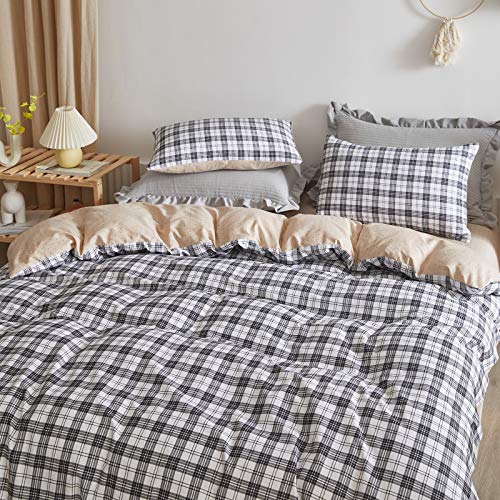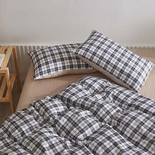 Hanacat 掛け布団カバー 綿100% ダブル 190×210cm 単品売り 吸湿性 通気性 チェック柄 黒白