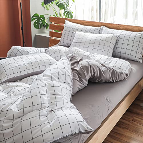 NSNLGSGC 掛け布団カバー 掛ふとんカバー ダブル 単品売り 掛けふとんカバー ふとんカバー 白 チェック ホワイ