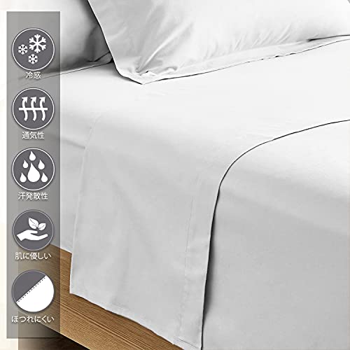 400スレッドカウントコットン フラットシーツ - (クイーン) 長繊維綿100% 通気性良し 高級コットンサテン ベッ