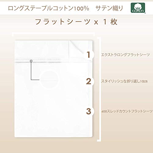 気持ちよく安眠:正真正銘の400スレッドカウントサテン織り生地がパリッと気持ちよく、そしてソフトな絶妙に気持ちいいバランスでお楽しみいただけます。フラット シーツ 綿100 は 230cm x 270cm + 上部の裾部分が10cm折