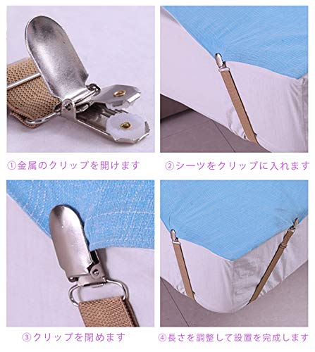 【操作便利】ベッドシーツの四隅を裏側からしっかり固定、ズレを防止!強力クリップを使った安心設計!