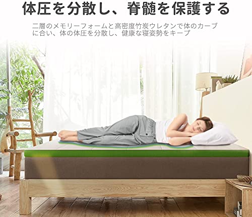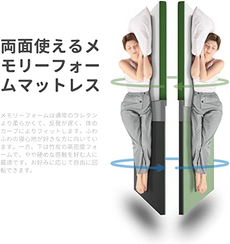 | 商品名 | FLEXPEDIC マットレス シングル 2層 メモリーフォーム 緑茶 リラックス効果 高密度竹炭ウレタン 厚さ5cm 底付き |