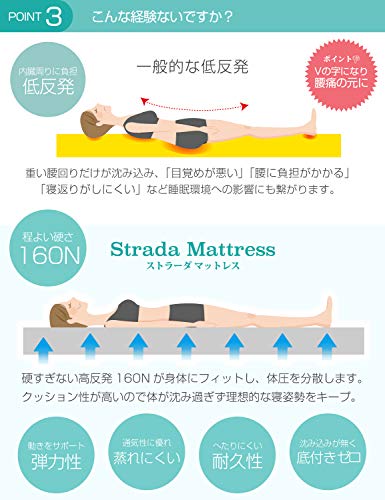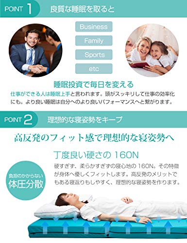 【極厚10cmで底つき感なし】寝心地の良さを追求した極厚10cmのマットレスで、底つき感を感じることなく安心の寝心地です。【取手付き】取手付きで持ち運びやすい【硬めの高反発でしっかり身体を押し返す】程よいかたさで、体の重みをしっかりと押し戻して体を支えます。体にフィットしなが