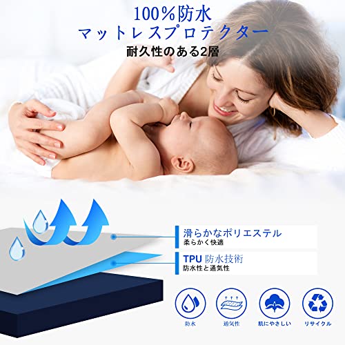 【ディープポケット】 防水ボックスシーツ クイーン、使いやすくお手入れも簡単。160cm×200cm + 30cmのディープポケット!また、側面には柔らかく通気性のある生地を使用し、マットレスの通気性を確保し。