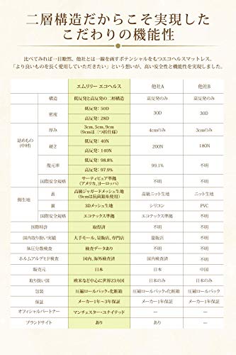 MLILY エムリリー マットレス トッパー 高反発&低反発の二層式 デンマーク生まれ 超高密度50D (セミダブル/3cm