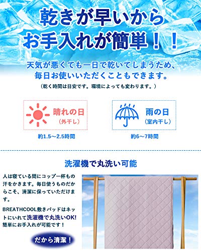 ?【接触冷感と通気性を発揮する敷パッド】日本人の想いを叶えた「もっちり・新感覚」+「気持ち良い肌触り」+「高通気性」と「接触冷感」を備えた立体構造の夏用敷きパッドです。Breathcool (ブレスクール)敷パッドのメッシュ生地は普通の?約2倍の厚さがあり、敷くだけで、あなたの睡眠は変わります。