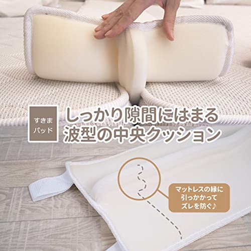 【隙間パッド】 家族みんなで眠れる広いベッドに!ベッドを繋げたときに気になる隙間や段差を埋めて、2つのベッドを大きく広~いベッドに!上から2台用のベッドパットやマットレスカバーをかければより自然に大きなベッドへ大変身。お昼寝や夜眠るだけでなく、好きな絵本を読んだり広~いベッドでお子さまとゆっくり過ごしませんか?