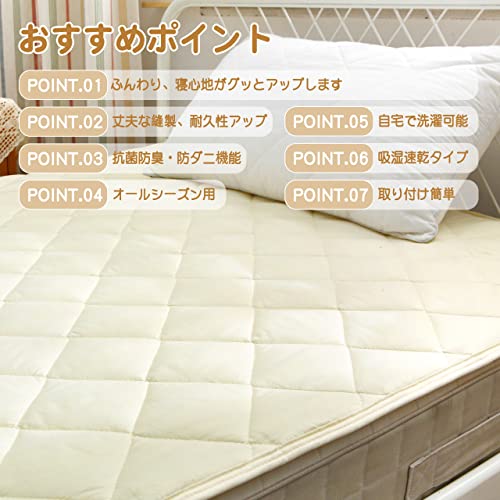 ベッドパッド TEIJIN(帝人)マイティトップII中綿使用 抗菌・防臭・防ダニ加工 洗える 四隅強化ゴムバンド付き